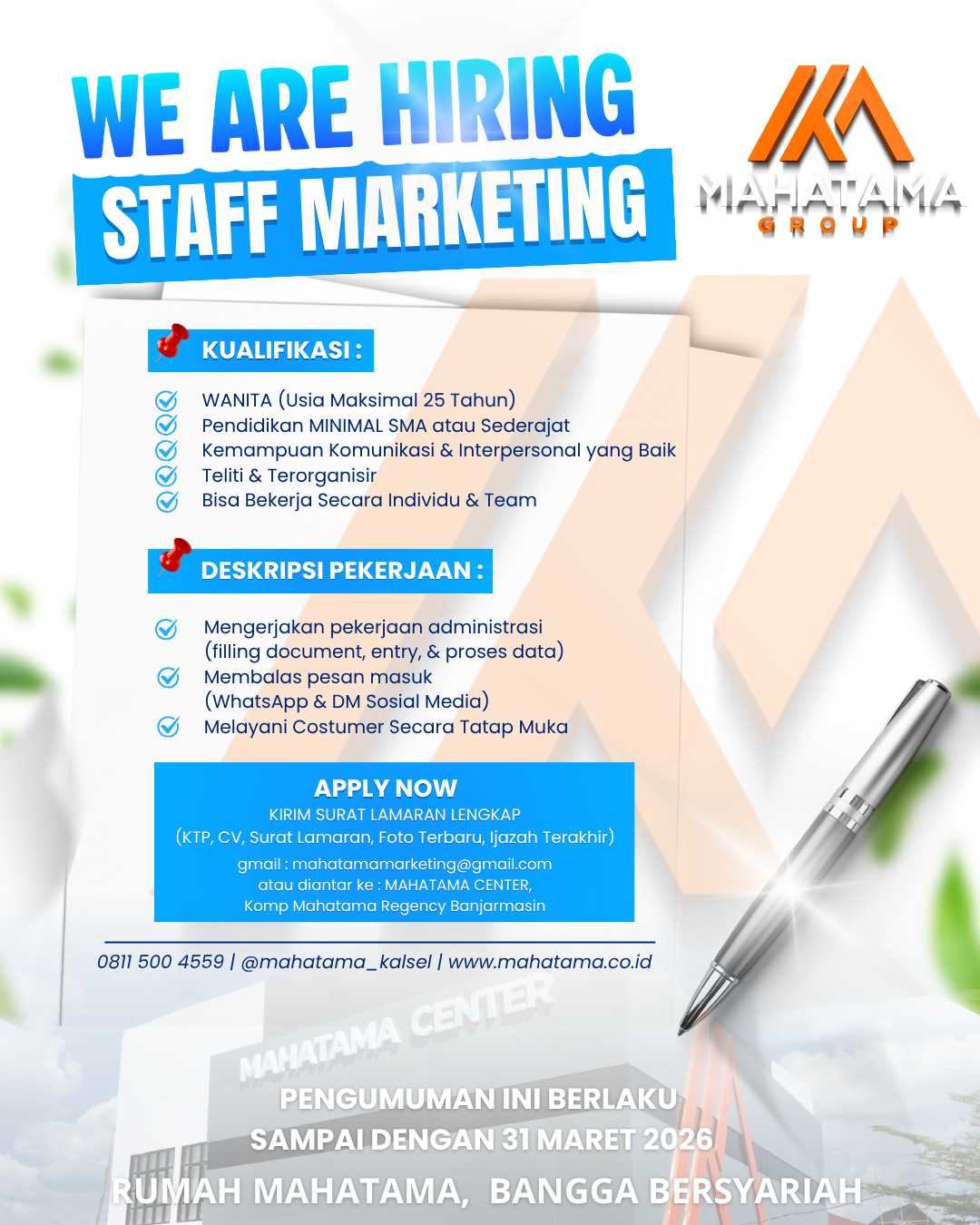 Mari bergabung bersama kami, bersama keluarga besar mahatama group